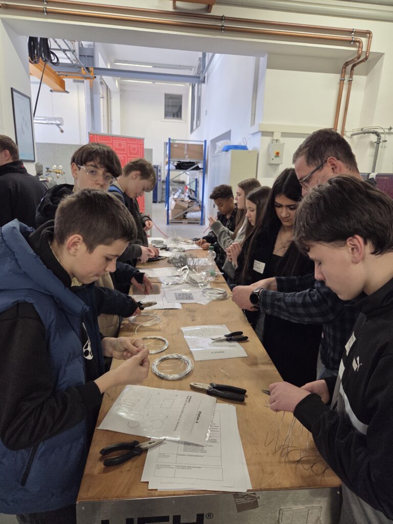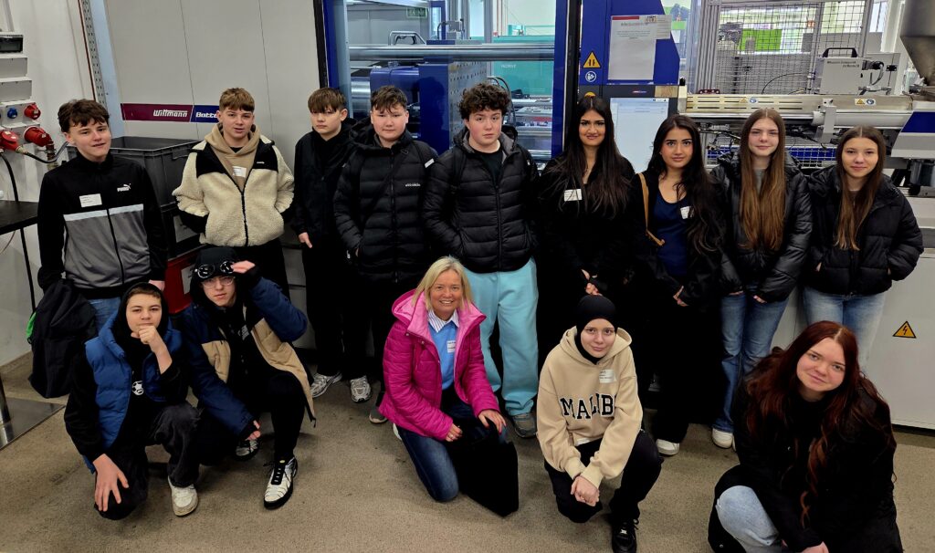Eine Gruppe von 13 Schüler*innen des Jahrgangs 8 nutzte die Möglichkeit, im Rahmen der Berufsfelderkundungstage, zahlreiche Berufe rund um die Kunststoffverarbeitung, kennenzulernen. An zehn verschiedenen Stationen boten heimische Unternehmen den Schüler*innen die Möglichkeit einzelne Tätigkeiten auszuprobieren, die Bestandteil der Produktion von Kunststoffprodukten sind. Hierzu gehörten beispielsweise Tätigkeiten aus den Bereichen Werkstoffprüfer*in; Feinmechaniker’in, Werkzeugbauer’in; Werkzeugmechaniker*in und Elektroniker*in. Diese ersten Einblicke in die Berufswelt zeigten den Schüler*innen, welche Tätigkeiten hinter den unterschiedlichen Ausbildungsberufen stehen. Ein wichtiger Schritt, insbesondere im Hinblick auf die kommenden zwei Jahre in der Berufsorientierung, wenn darum geht, Praktika zu absolvieren und den individuell passenden Ausbildungsberuf zu finden. Der Tag diente erfolgreich dazu Vorbehalte abzubauen und aufgeschlossen Ausbildungsberufen im Bereich der Industrie gegenüberzutreten.